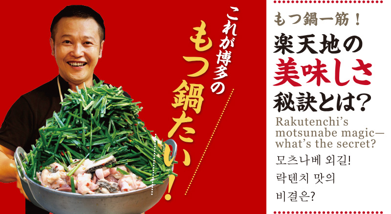 Since 1978, “The Original Motsunabe Rakutenchi” has been a local favorite, drawing fans from Japan and beyond. Enjoy authentic Hakata soul food here!