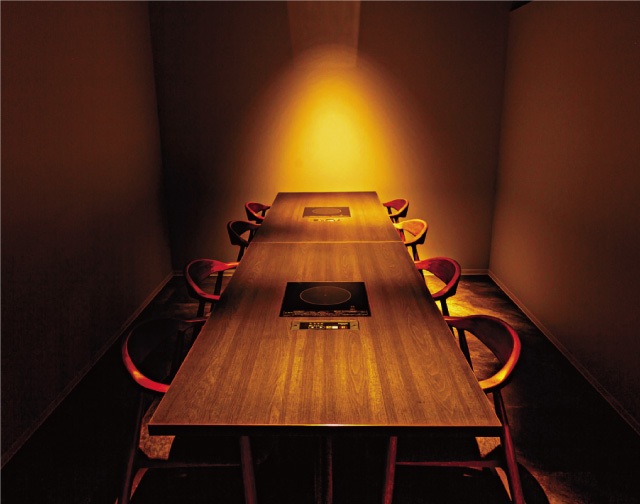 厳選されたブランド和牛を味わえる天神で話題の店。特製割下と濃厚な味わいのブランド卵「蘭王」が肉の旨さを引き立てる「すき焼き」。「しゃぶしゃぶ」はオリジナルのゴマダレとポン酢がたまらない。がめ煮、明太子をふんだんに使った福岡ならではの一品料理なども豊富。店内は西村織物の博多織を大胆に使った、伝統と現代が融合するこだわりの空間が広がり優雅な時間を楽しめる。
