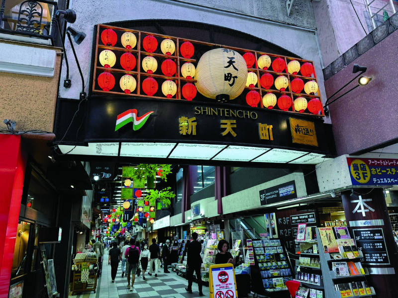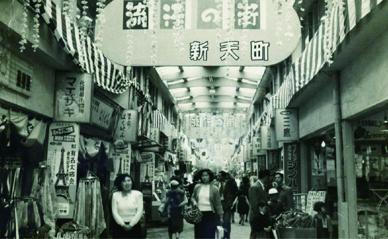 西鉄福岡(天神)駅から天神西通りに向かって伸びる「新天町商店街」。終戦直後、 大空襲で焼け野原となった天神町(当時の町名)に、「活気と笑顔を取り戻そう」と博多商人たちが立ち上がり、1946(昭和21)年に木造瓦ぶきの建物で21軒が開店。 1950(昭和25)年には、延べ288メートルにおよぶアーケードも完成した。創業時の大売り出しを機に始まった「新天まつり」は、今では「大ワゴン祭」として 親しまれる恒例行事に。博多商人のパイオニア精神は、博多祇園山笠の伝統に も新たな風を吹き込み、「オッショイ!」の掛け声とともに駆け抜ける山笠は、新天町の夏の風物詩となっている。