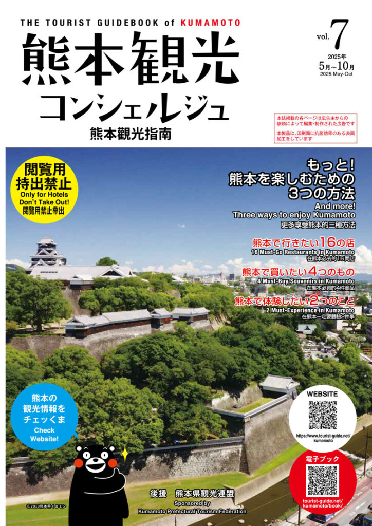 熊本観光コンシェルジュは熊本のホテル・旅館などの客室に設置されている、これまでにない熊本の観光情報誌。観光やビジネスで熊本に来られた方が、ホテルや旅館の部屋で読む、新しいスタイルの雑誌です。