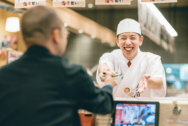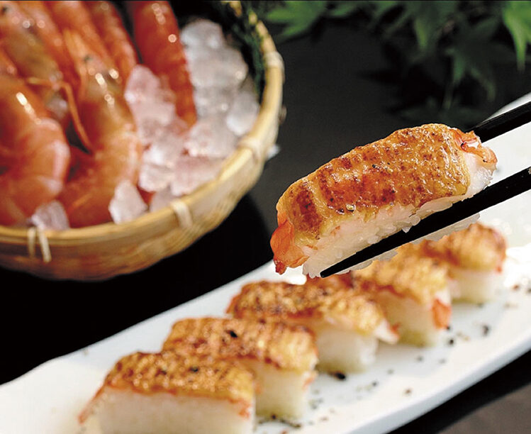 「美味しい寿司をたくさんのお客様に食べてほしい」と老舗寿司屋から回転寿司店へ。創業時の精神は今も変わらず、素材へのこだわりと職人の心意気が寿司一つひとつに光る。磨き上げられた技術によって提供される寿司を、2種類の醤油や塩レモン、炙りなど『寿司虎』ならではの食し方で楽しんで。
