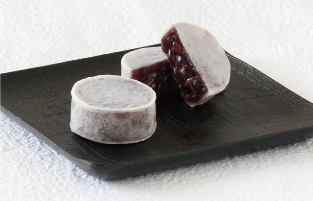 風味豊かな小豆餡で求肥を包んだ「誉の陣太鼓」(4個入886円)
