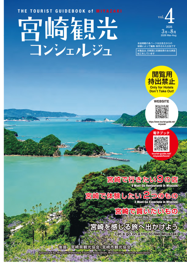 宮崎観光コンシェルジュは宮崎のホテル・旅館などの客室に設置されている、これまでにない宮崎の観光情報誌。観光やビジネスで宮崎に来られた方が、ホテルや旅館の部屋で読む、新しいスタイルの雑誌です。