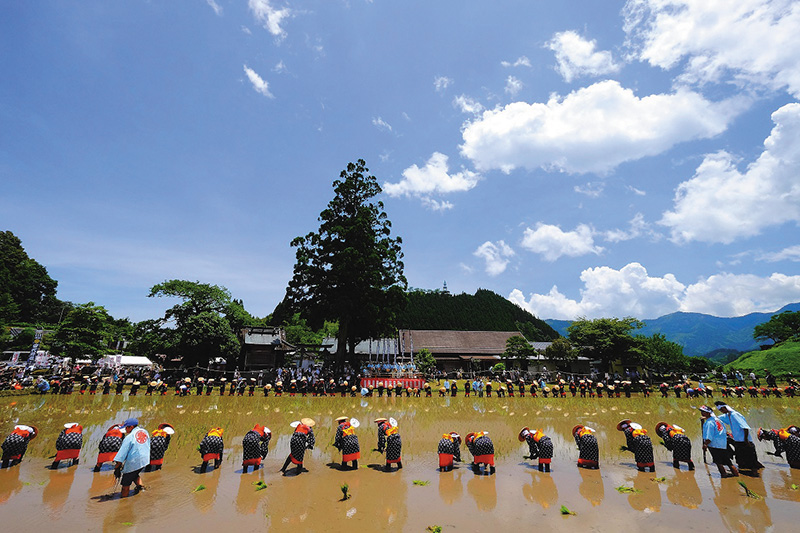 美郷町の三大祭りの1つである「御田祭」。美郷町西郷にある田代神社の農耕神事で毎年7月に行われ、平安時代からおよそ1000年続く伝統行事。無病息災と五穀豊穣を祈願する古式ゆかしき田植え祭りは、県の無形民俗文化財にも指定されている。