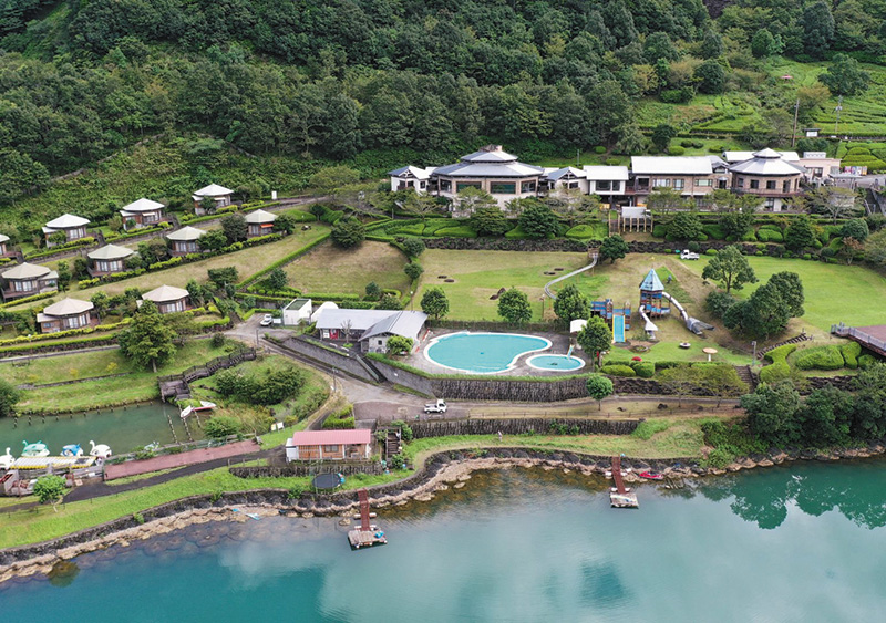 大内原ダム湖の湖畔に設立された、雄大な自然に囲まれた総合レジャー施設。眼前に耳川を望む園内には、大浴場「美々川の湯」や12棟の温泉付コテージのほか、湖面を利用したウェイクボード体験などアクティビティも豊富。