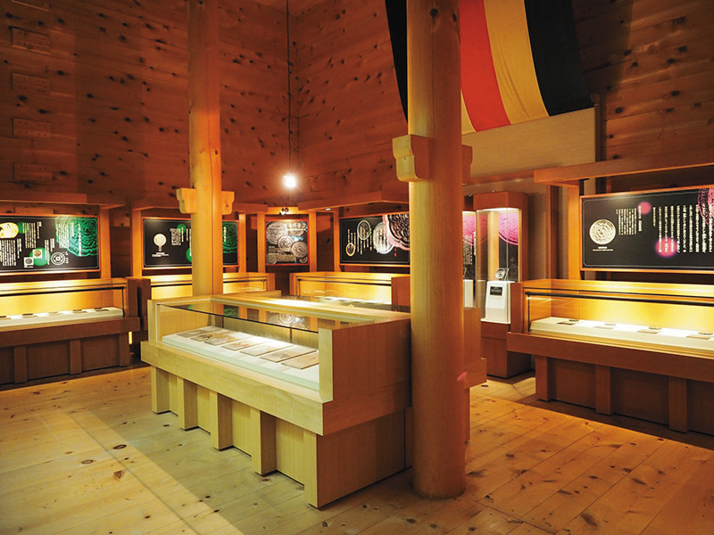 奈良・東大寺の正倉院を忠実に再現した建物。宮内庁の正倉院原図を元に、樹齢400年から500年の木曽ヒノキを使用し再建された。奈良東大寺大仏殿に収められている銅鏡と同じ「唐花六花鏡(とうかろっかきょう)」をはじめとした33面の銅鏡や、師走祭りの紹介などがされている。