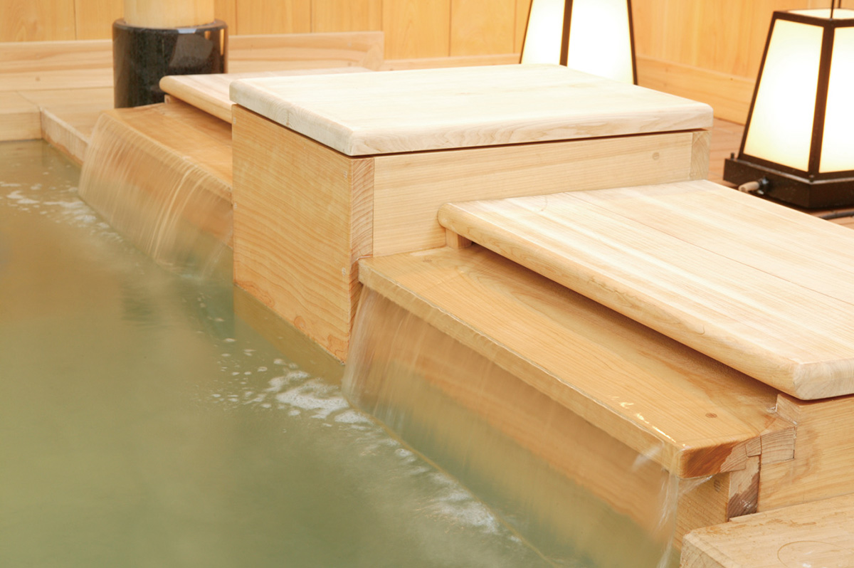 木の香りいっぱいの露天檜風呂。露天風呂も種類豊富