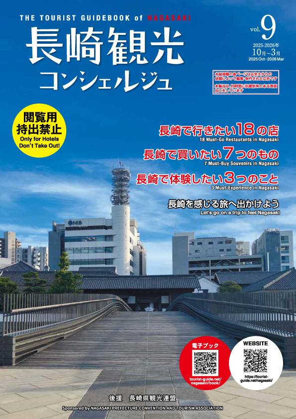 長崎観光コンシェルジュは長崎のホテル・旅館などの客室に設置されている、これまでにない長崎の観光情報誌。観光やビジネスで長崎に来られた方が、ホテルや旅館の部屋で読む、新しいスタイルの雑誌です。