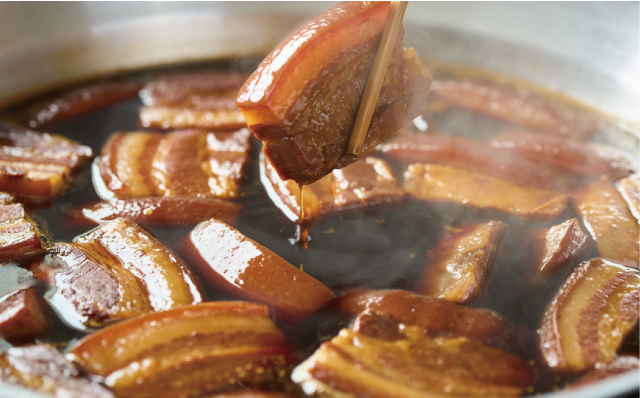 郷土料理として愛される卓袱料理・角煮の専門店。厳選した豚肉を熟練の職人が丁寧に下ごしらえし、余分な脂を除きながら秘伝のタレで芯までじっくり煮込む。角煮の旨みを最大限に引き出すため、小麦の配合からこだわった特製生地は驚くほどふっくら。とろける肉質と生地が調和する「角煮まん」は、まさに至福の逸品。
