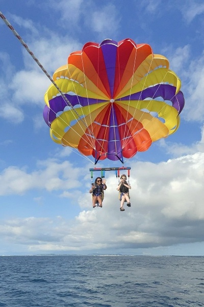 「海に公園をつくる」というコンセプトのオリ ジナルクルーザーには、すべり台・ジャンプ 台・海上ブランコが付いており、シュノーケル も含めて遊び放題! パラセーリングや各種マ リンスポーツも楽しめる最高の遊び場だ。